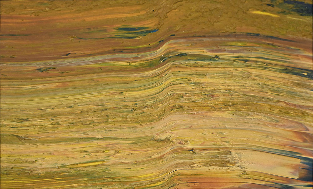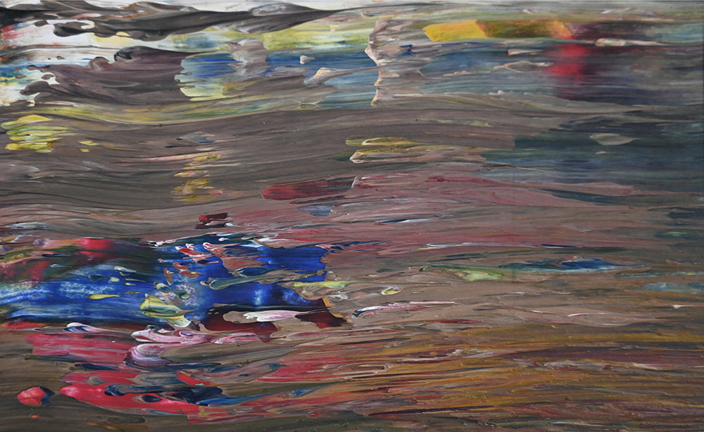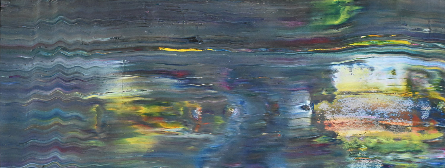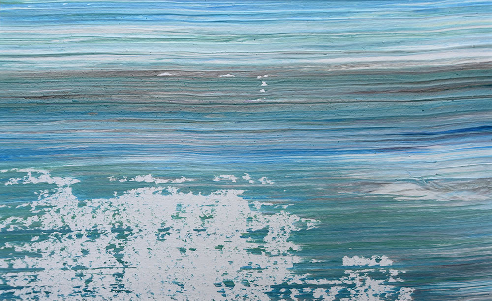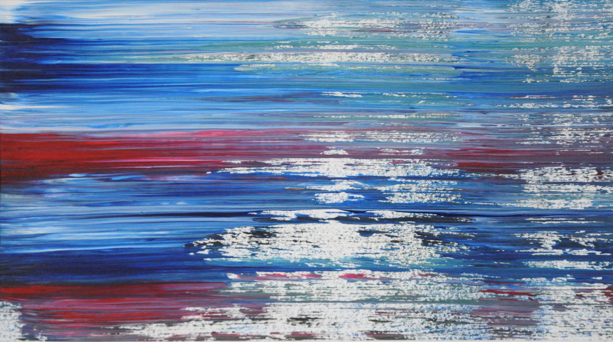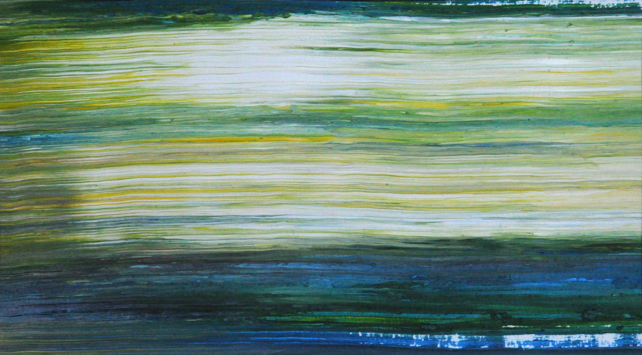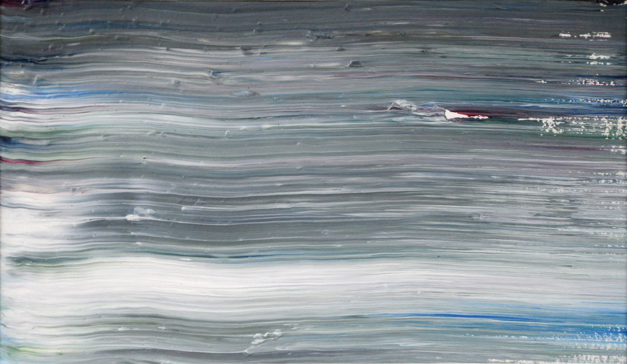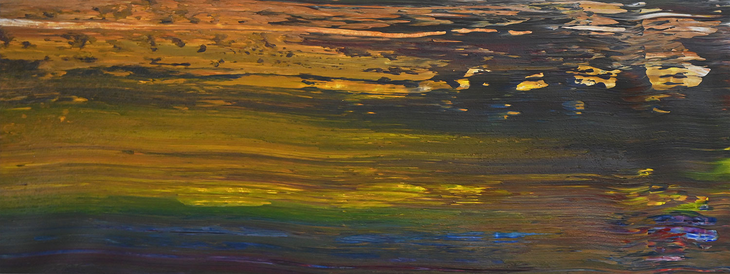 Door de jaren heen maak ik veel middelgrote en kleine Waterwerken in acryl op papier. Op kleiner formaat kun je makkelijker experimenteren. Een deel van die uitprobeersels kan direct weg, maar er is soms ook interessant werk bij. Deze kleinere werken zijn soms met de kwast, soms met paletmes en soms met een houten balk geschilderd.