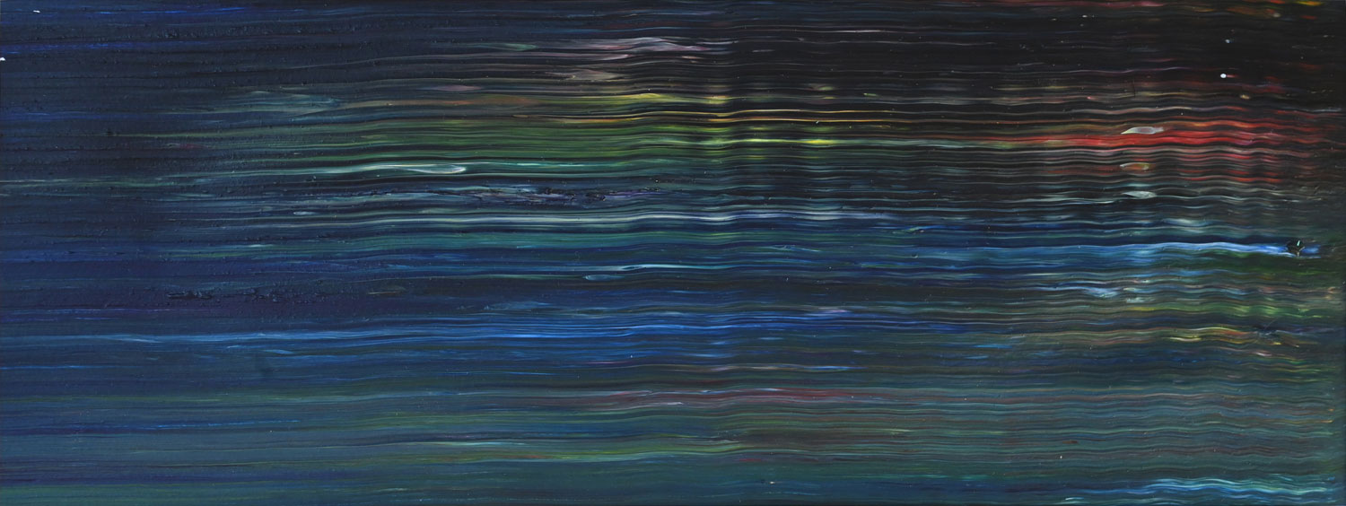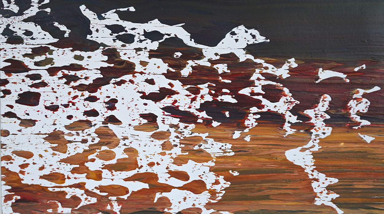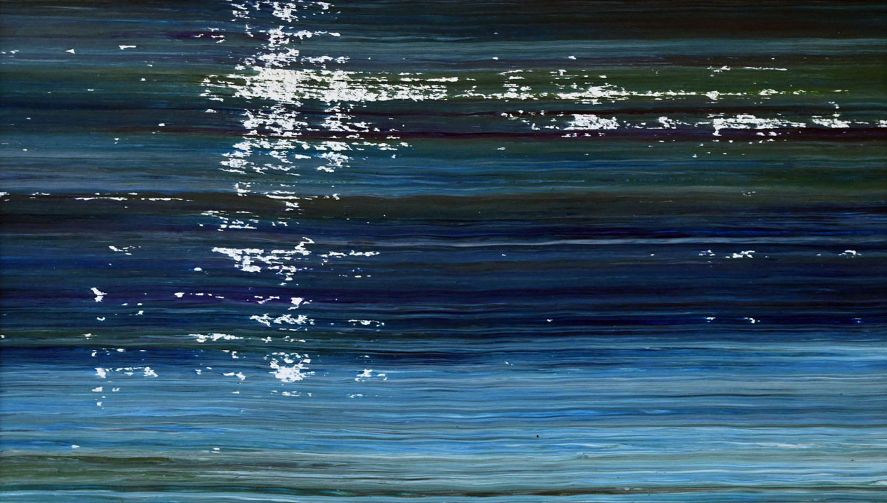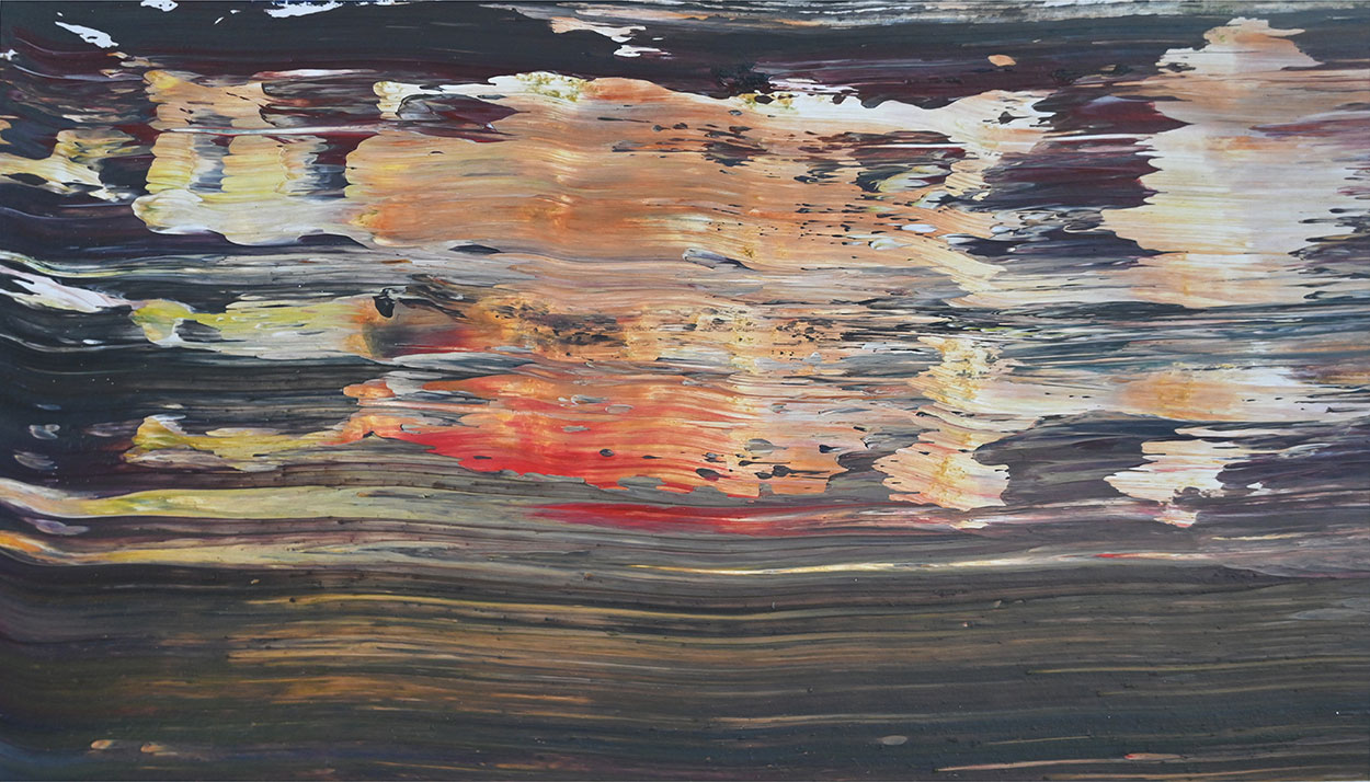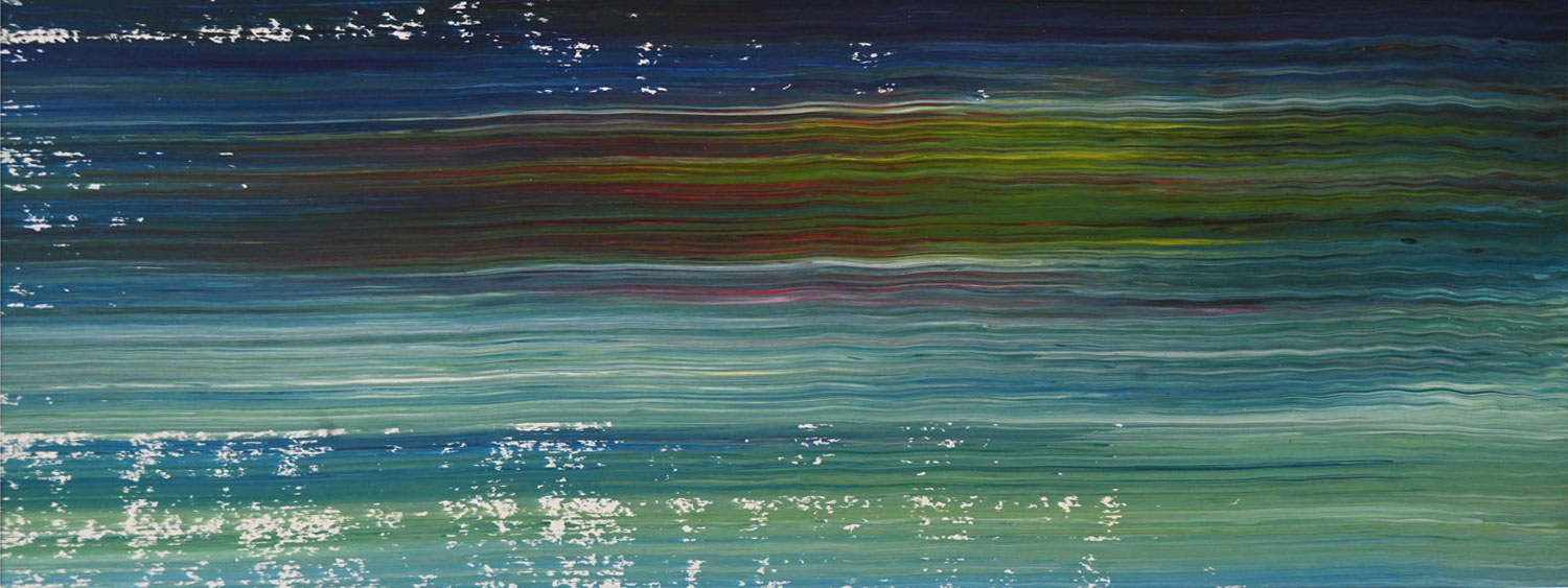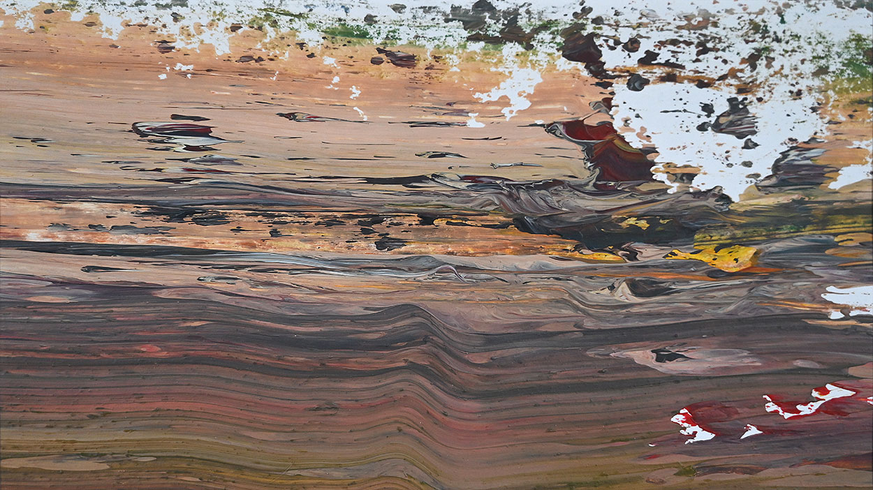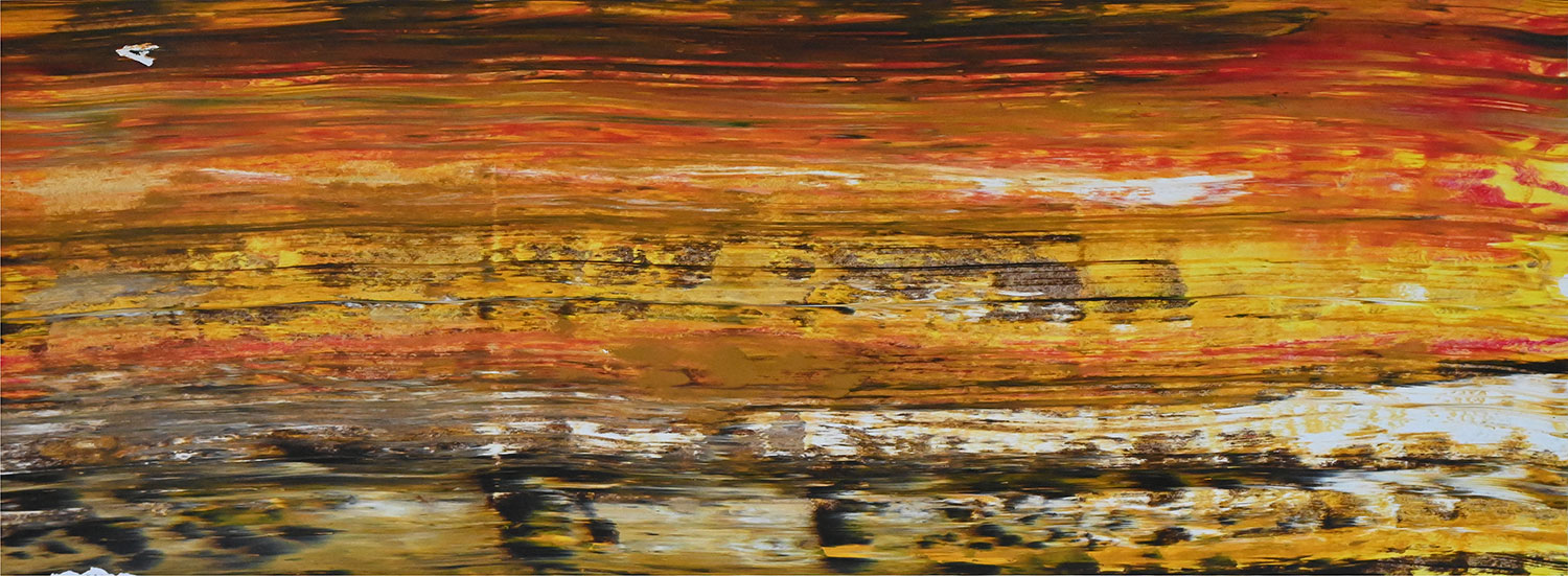 Door de jaren heen maak ik veel middelgrote en kleine Waterwerken in acryl op papier. Op kleiner formaat kun je makkelijker experimenteren. Een deel van die uitprobeersels kan direct weg, maar er is soms ook interessant werk bij. Deze kleinere werken zijn soms met de kwast, soms met paletmes en soms met een houten balk geschilderd.
