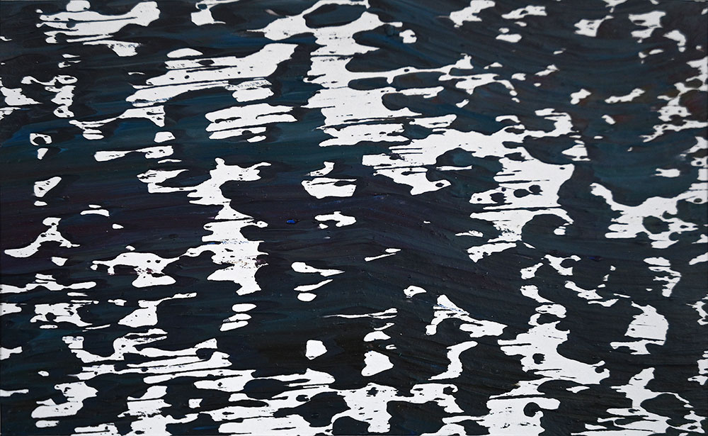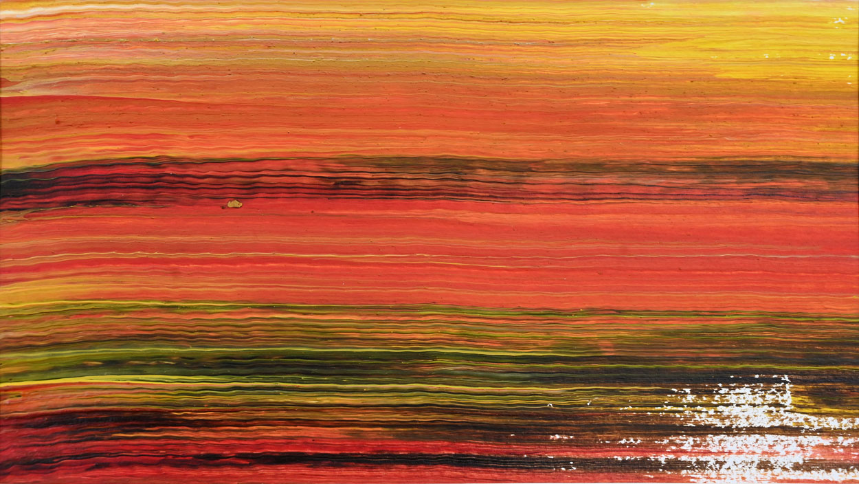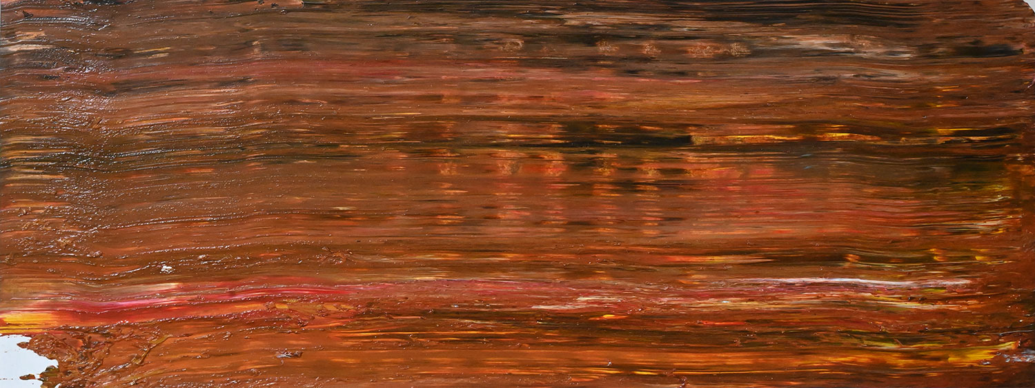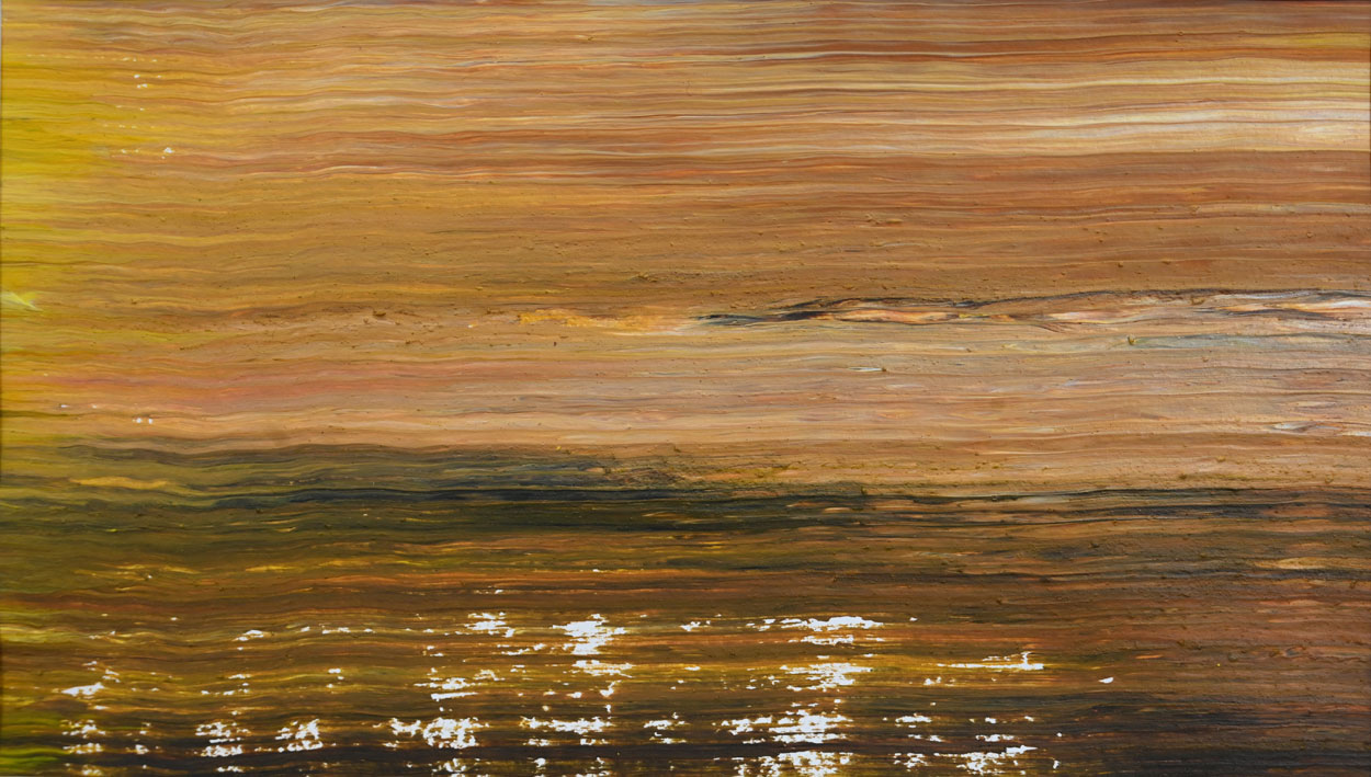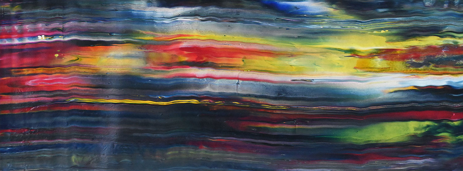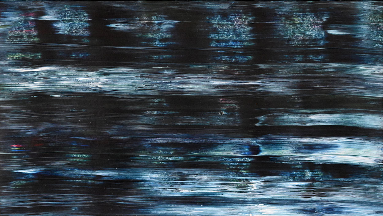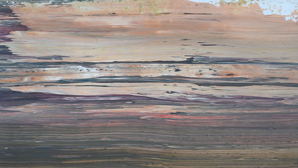 Door de jaren heen maak ik veel middelgrote en kleine Waterwerken in acryl op papier. Op kleiner formaat kun je makkelijker experimenteren. Een deel van die uitprobeersels kan direct weg, maar er is soms ook interessant werk bij. Deze kleinere werken zijn soms met de kwast, soms met paletmes en soms met een houten balk geschilderd.