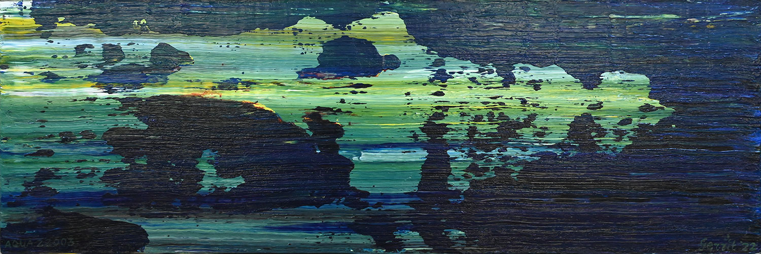 Bij de werken vanaf 2020 is het thema Dreiging komen te vervallen. Het werk is kleurrijker. De laatste werken in acryl zijn gelaagder. Ik maak daar ook gebruik van schrapen en schuren om onderliggende lagen weer zichtbaarder te maken. Het werk ziet er dan meer doorleefd en verweerd uit.
