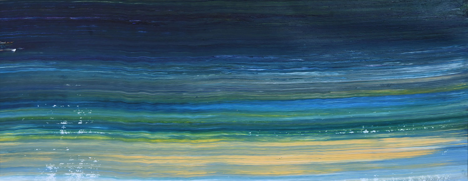 Vanaf 2015 heb ik Waterwerken in acryl gemaakt. Ook in 2016 en 2018 maakte ik Waterwerken in acryl. In totaal hebben al tientallen grote, middelgrote en kleine Waterwerken in acryl het levenslicht gezien. Ze gaan over ritme, reflectie en over de beweging van het trage stromen. In het werk van 2019 en 2020 is er ook sprake van de dreiging van water.
